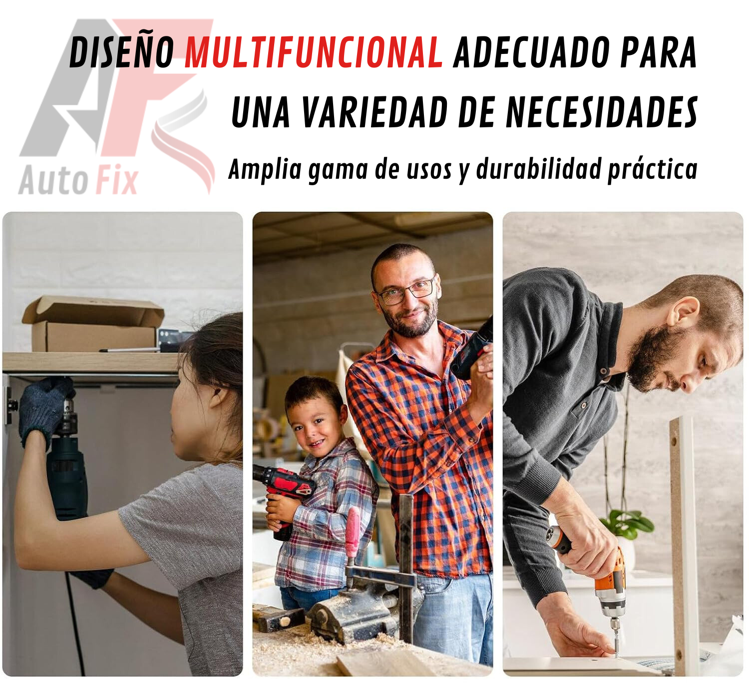 El juego de destornilladores eléctricos AutoFix se convertirá en tu aliado indispensable. Desde ensamblar muebles hasta reparar electrodomésticos, este destornillador inalámbrico y recargable hace todo más fácil. Adiós a cargar pesadas cajas de herramientas. Gracias a su diseño compacto, podrás llevarlo a cualquier lugar para enfrentar cualquier tarea.