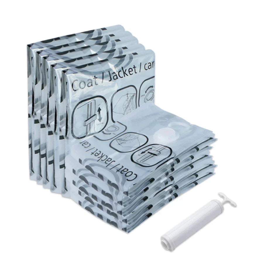 Nuestras Bolsas Compresoras de Ropa son la solución ideal para maximizar el espacio en tu armario. Con su diseño que ahorra espacio y su cierre hermético, estas bolsas protegen tus prendas del polvo y la humedad. Utiliza la bomba de mano o tu aspiradora para eliminar el aire rápidamente.
