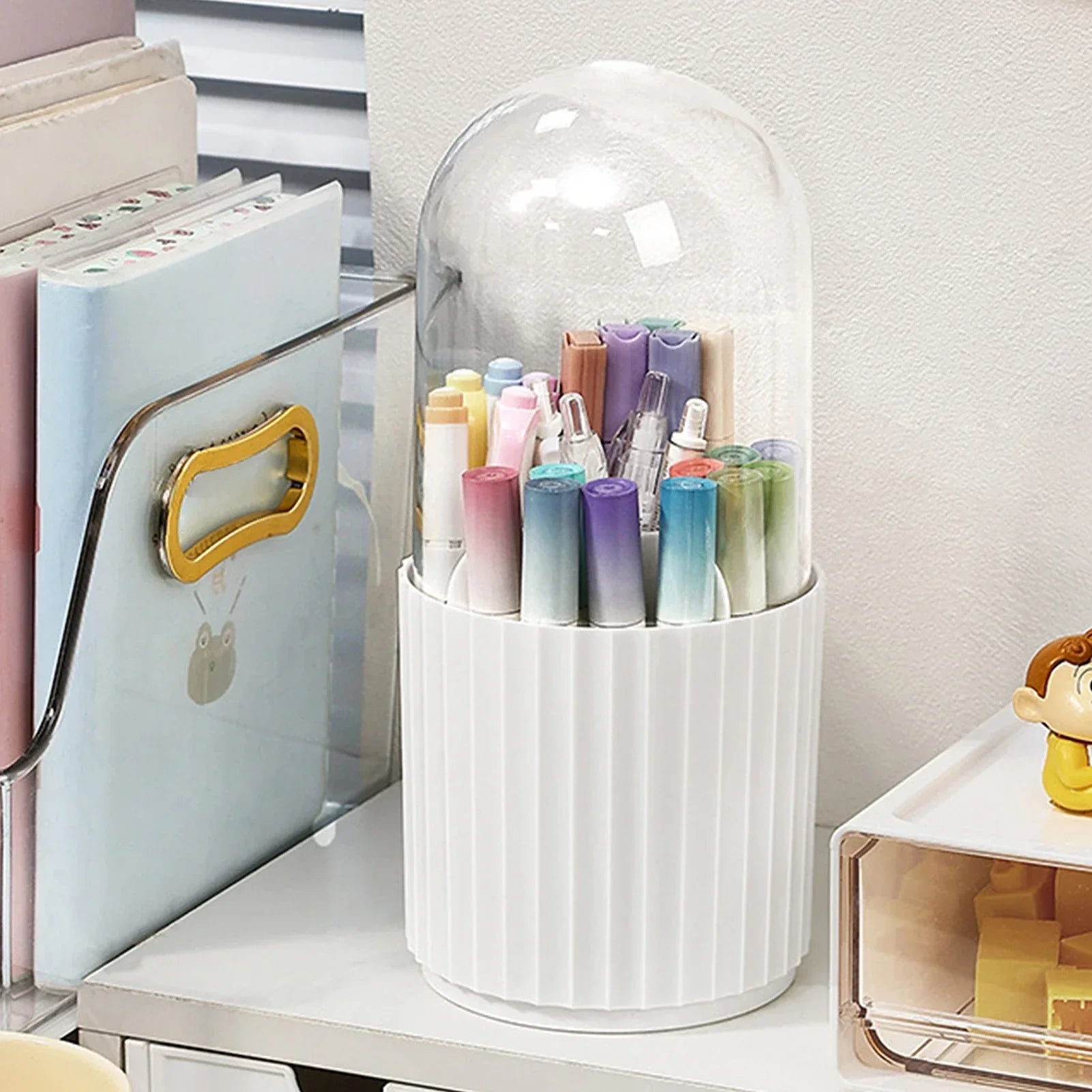Si tus folletos de maquillaje y cosméticos están siempre esparcidos, el CosmoSpin trae la solución. Este ingenioso organizador rota para que puedas encontrar lo que necesitas al instante. Con su cubierta transparente, tus folletos estarán protegidos del polvo mientras permanecen accesibles.