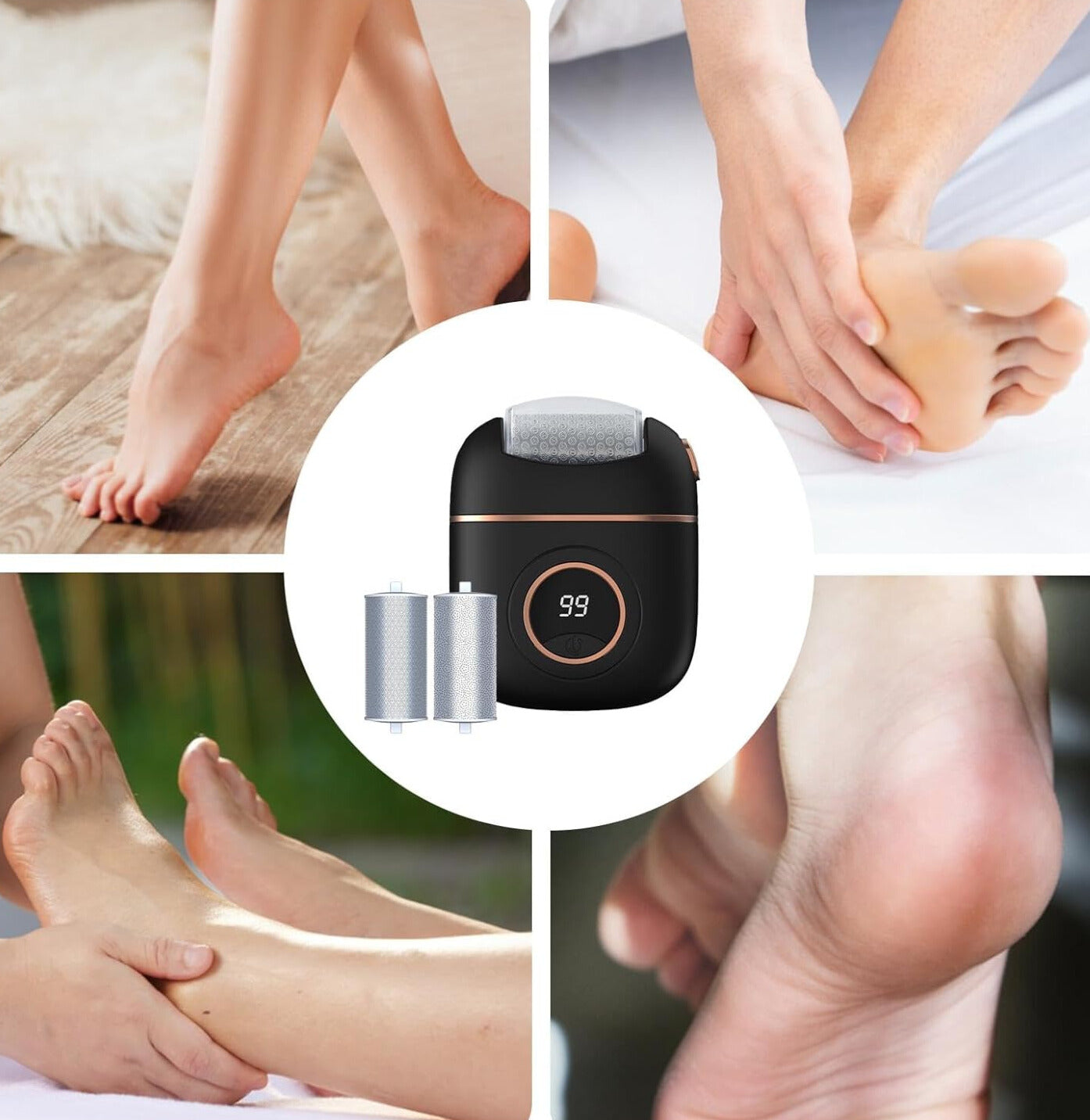 No importa si tus pies están expuestos a trabajo pesado o simplemente necesitan un cuidado extra, esta herramienta es ideal para todos. Con sus cabezales intercambiables, es perfecta para cualquier tipo de piel.