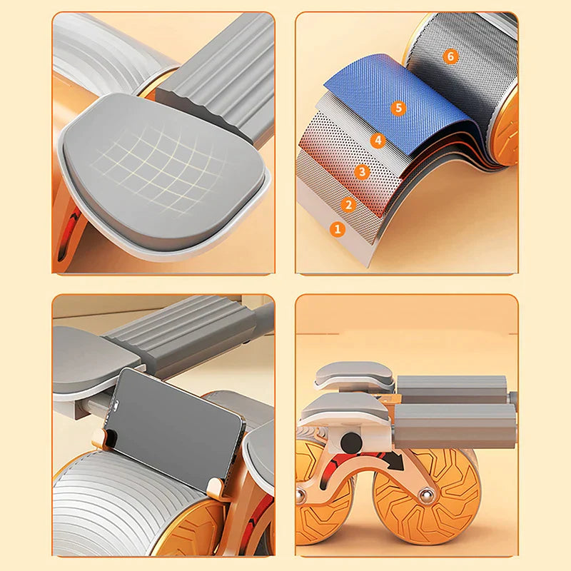 Conozca CoreFlex Rebound Ab Roller, su nuevo mejor amigo para conseguir un tronco sólido como una roca. Deslícese en su viaje de fitness con nuestro rodillo de rebote automático y fácil de usar. Se acabaron los tambaleos y las suposiciones: simplemente rueda y deja que nuestra innovación te guíe hacia atrás para realizar un ejercicio de abdominales completo y atractivo, ¡incluso si acabas de empezar!