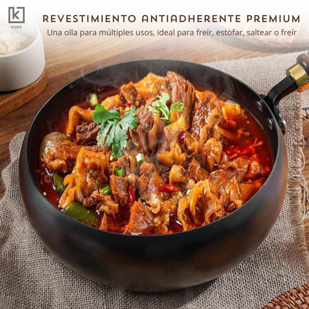 Descubre la Sartén Kuro, diseñada para evitar que los alimentos se adhieran, incluso sin recubrimientos químicos. Cocina deliciosas comidas sin frustraciones.