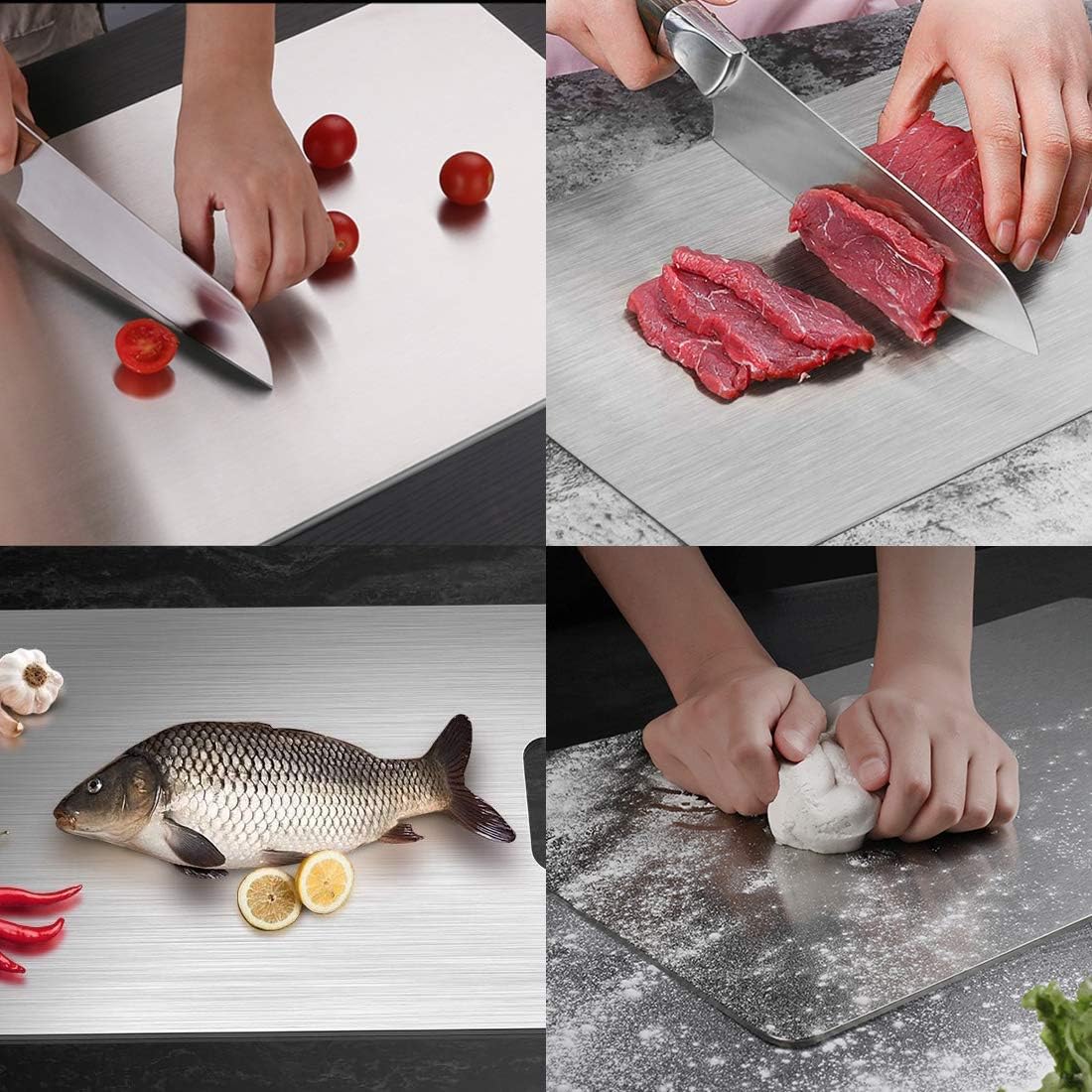 Descubre la 'Tabla Inoxidable Doble Cara', tu aliado perfecto en la cocina. Di adiós al moho y las bacterias gracias a su innovador diseño en acero inoxidable 304. Es gruesa y resistente, ideal para todas tus preparaciones, incluyendo amasar y cortar cualquier tipo de alimento. ¡Haz tu cocina más segura y eficiente!