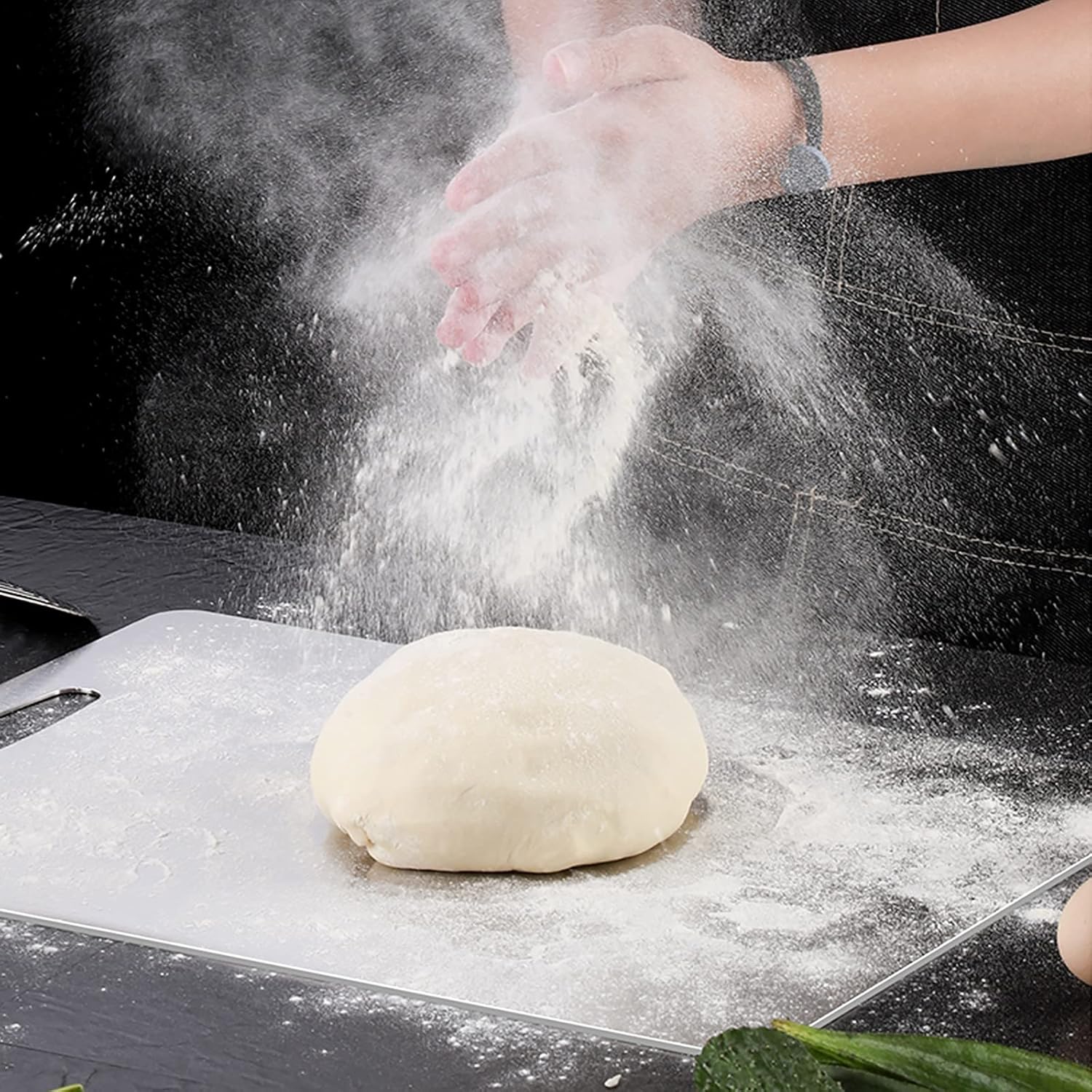 La 'Tabla Inoxidable Doble Cara' no solo es duradera sino también fácil de limpiar, lo que la convierte en la opción perfecta para mantener tu cocina libre de gérmenes. Su superficie doble se adapta a cualquier necesidad culinaria, ya sea amasar masa o cortar carne, ofreciendo siempre los mejores resultados sin contaminar tus alimentos.